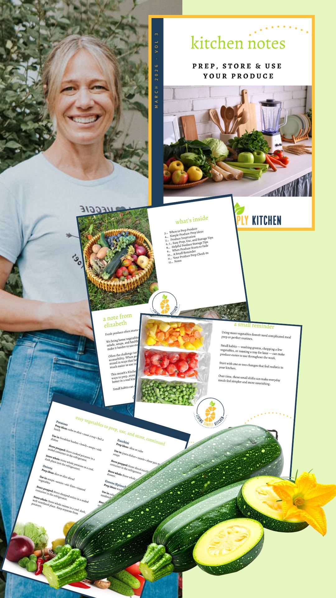 Inside, you’ll learn simple ways to prep produce when it fits your schedule, store fruits and vegetables so they last longer, and build small kitchen habits that make cooking with produce easier throughout the week.